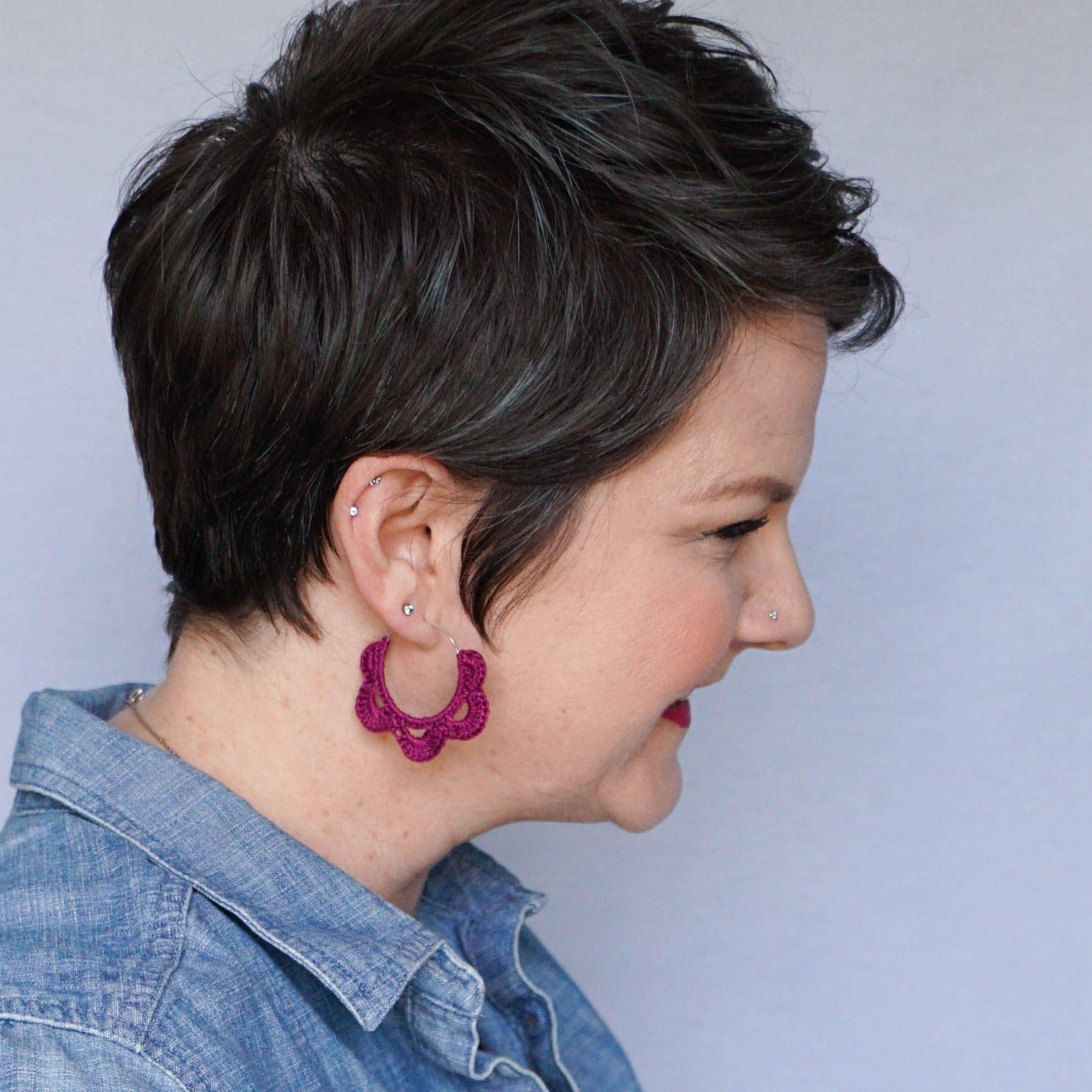 You can find these earrings for purchase in Sarah’s Ravelry shop here or in her Etsy shop here!